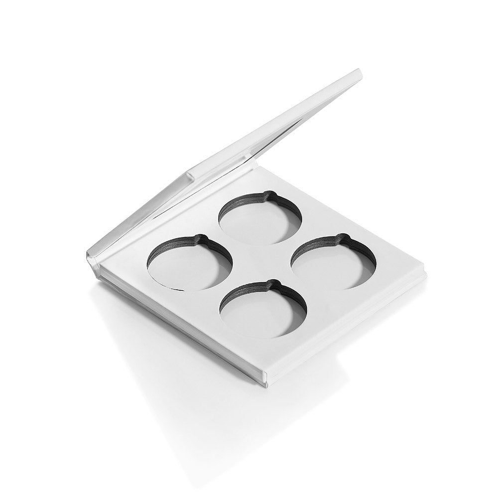 This palette can hold 4 full sized eyeshadows of your choice, (not mini's) just simply add them to your cart along with this palette. It is completely customisable and lets you choose what to take with you. The palette is made to a high quality and has been expertly designed with a clear window to make it easier to view and reach for your makeup. It is durable and strong and has built in extra cushioning to protect your contents. Compact design and is a must have for any makeup lover on the go or for that perfect touch up!