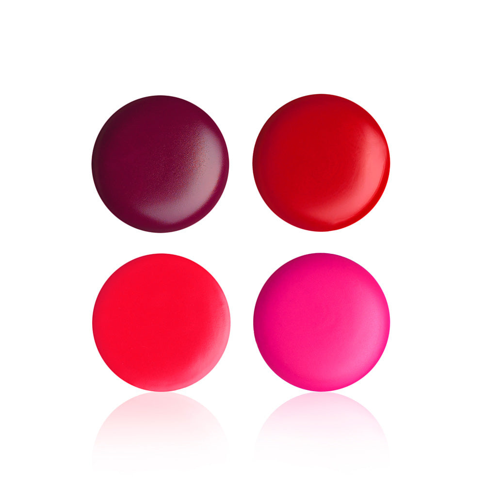 This set contains a selection of our berry and red toned lip pans. Colours included from left to right are; Diva, Hollywood Red, True Love and Bitten.